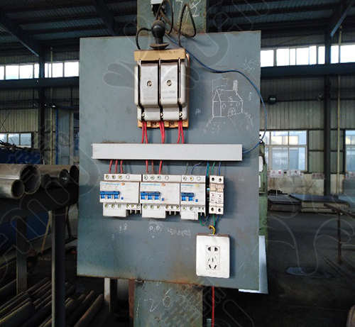 改善前:電源箱開關(guān)裸露,距離切割機(jī)距離近,存在安全隱患。
